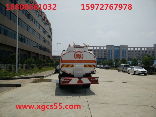 底盤配置:國五排放,采用東風公司生產EQ1110SJ8BDCWXP型柴油危險品專用汽車底盤進行加裝罐式車,可前翻駕駛室,東風朝陽發動機廠156馬力,加裝盤式制動,限速裝置,ABS,帶動力轉向,離合助力,軸距3800mm,8.25鋼絲胎。 罐體配置: 1、罐體以及罐體的前后封頭都采用國標優質Q235 碳鋼板/5㎜鋼板制作、罐體的前后封頭為水壓弧型狀、罐內防波板為Q235碳鋼 3.0mm鋼板制作\每倉罐內2道防波板\為水壓弧形狀,嚴格保證公告罐體尺寸制作水容積為9.2立方 2、罐車并配帶60\30帶回流閥的油泵、此泵安裝在車身左側中部位置,所有自流以及泵出口均帶出口保護箱, 3、罐體副梁上裝一個恒山大流量加油機,15米的回位卷盤,。 4、罐體為銀色漆,所有出口均帶堵蓋,保證整車公告外型尺寸,罐體正中部周圍反光帶,以及紅白相間的反光標識,“易燃易爆”標識貼于罐體左右后正中部各一只。 5、罐體頂部正中位置一只鋁合金歐標進料孔、罐體底部氣動海底安全總閥一只,。 6、出具湖北特檢院罐體檢驗報告、產品質量證明書均按標準出具、產品質量證明書內要求有氣動海底安全閥門的型號以及證明書、探傷報告、竣工圖。